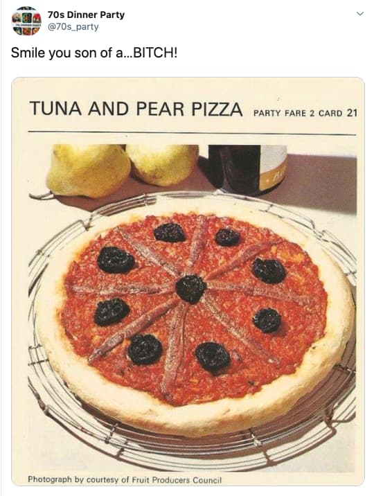 1970S Dinner Party / When frankfurters, fondue and hostess trolleys were in ... : What should i try next?!. Serve with bubbly for a classic cocktail. What should i try next?! Our christmas eve dinner last december nostalgically brought us back in time to the 1970s where thick cream, hippy pants and side burns were as popular as vegan and organic diets are today. Get inspired and get down. The good, the bad and the downright ugly of retro food based on the very funny twitter account @70sdinnerparty and 70sparty.tumblr.com.